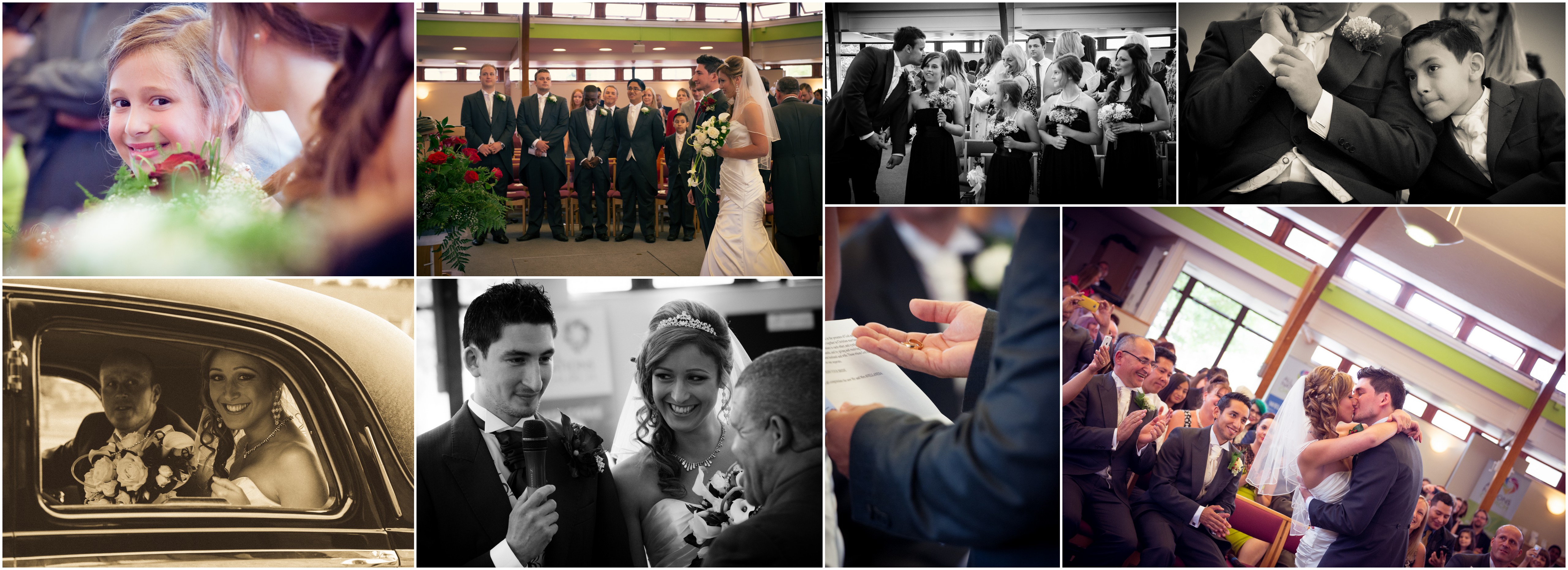 It always amazes me how in the space of a couple of hours, a house full of people in casual wear will gradually evolve into a home full of glamour, as one by one, everyone’s look is completed and it all comes together. Zoey wore a stunning strapless fishtail gown which had some sparkle detail to complement the tiara and earrings she was wearing. This was finished off with a very special beautiful necklace that had belonged to Zoey’s grandmother. As I set off for the church, I left behind the 3 younger bridesmaids who were upstairs, giggling and chatting as they created their own handmade confetti and planned who they would be coming down the aisle with. It was such a big day for them too; I was so pleased to see them enjoying every second of it.