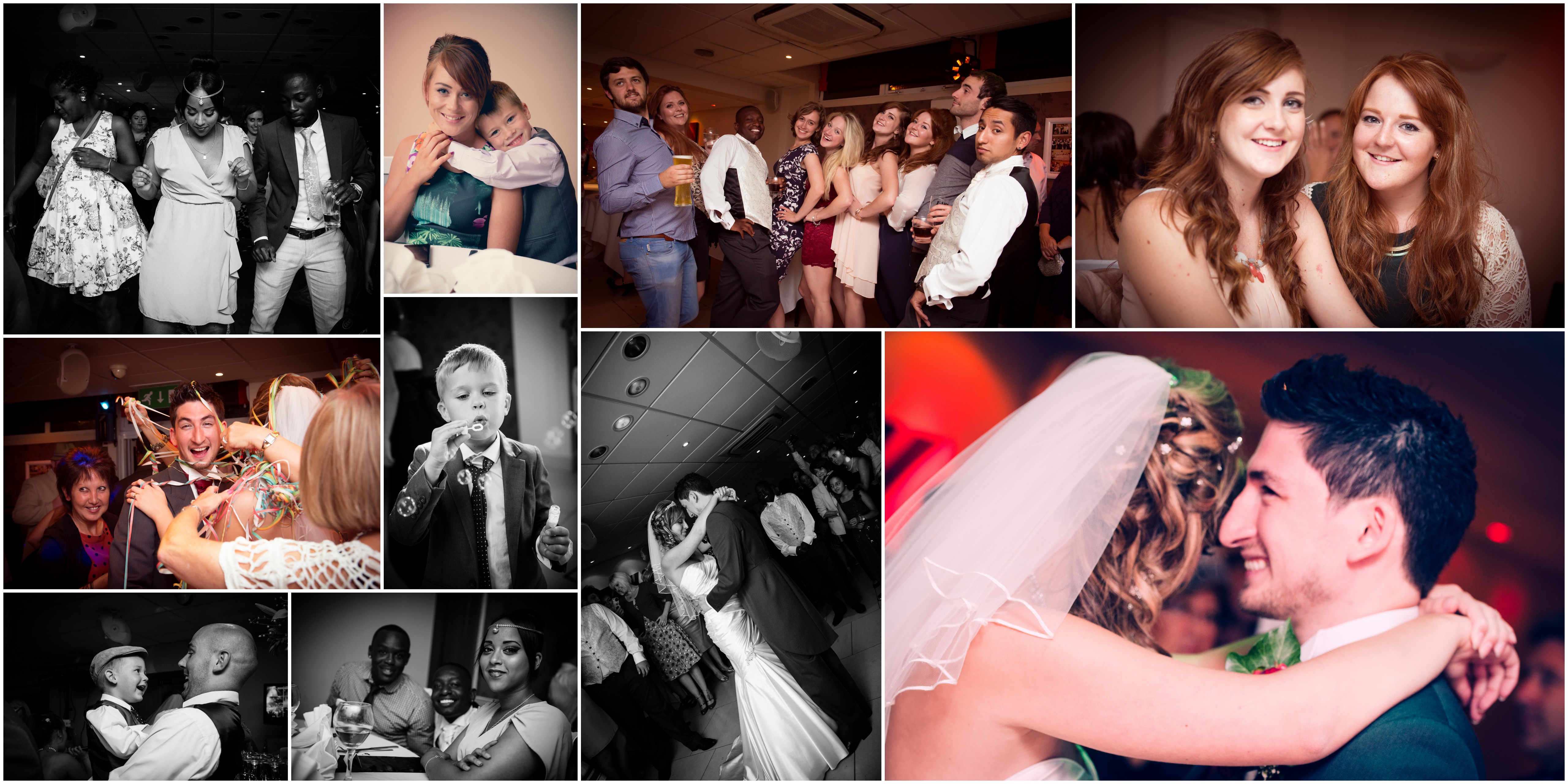 We rejoined the rest of the wedding party for their reception at Bellinis Restaurant in Clapham, Beds. Surrounded by Zoey and David’s black and red decorations, the room setting was very romantic. The speeches were excellent and I still think with a bit of practice, there’s time for David to make it into the Backstreet Boys yet! The evening played out with much fun and laughter, with the DJ managing to coax pretty much the entire party to the dance floor for The Macarena, which is no mean feat. He played some fantastic tunes throughout the night and kept the party moving for hours.